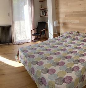 Chambre double donnant sur le jardin avec salle de bain privée.